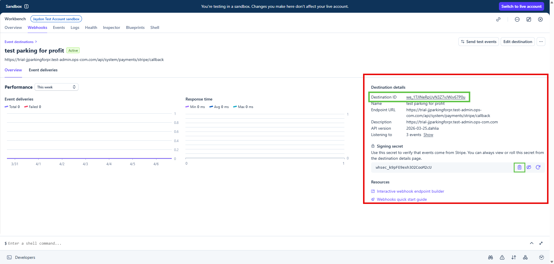Retrieve Your Signing Secret How to reveal and copy the whsec_ secret, and destination ID into OPSCOM